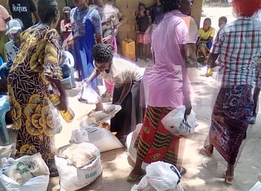 Au total 70 femmes déplacées et de famille haute de la communauté ont reçu, chacune l’appui selon le besoin identifié pour améliorer leurs conditions de vie pouvant leur permettre L'auto-prise en charge en charge pour des actions durables . Cette assistance porte sur les subventions et matériels de commerce de pains, vente des crédits mobiles, beignets, chinchards, du poulet, vente des carburants, huile de palme, cigarettes et tant d'autres.